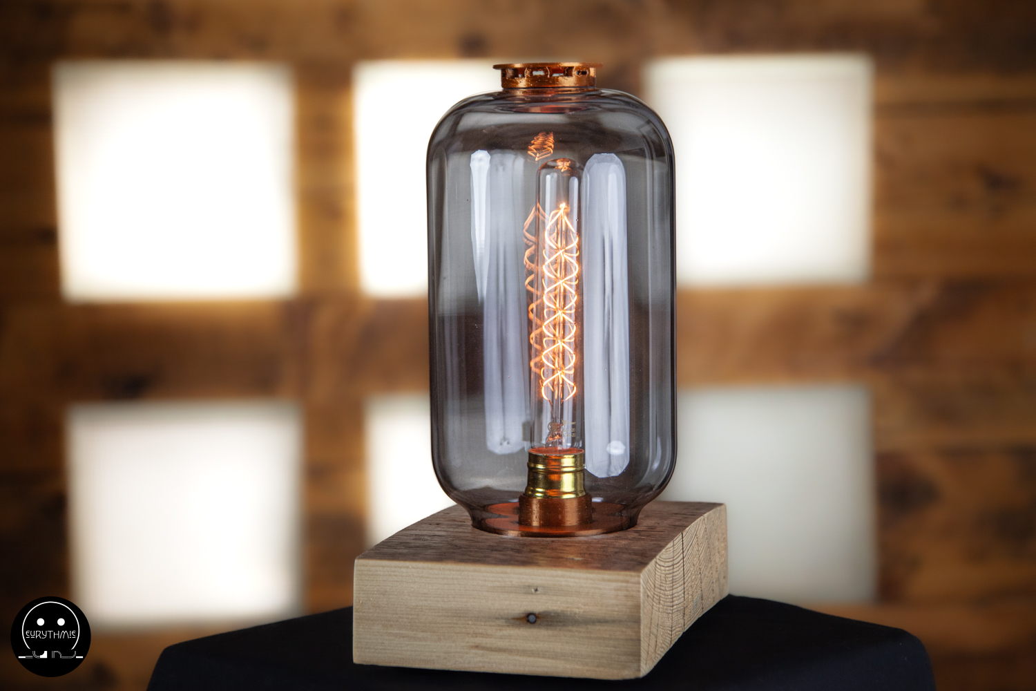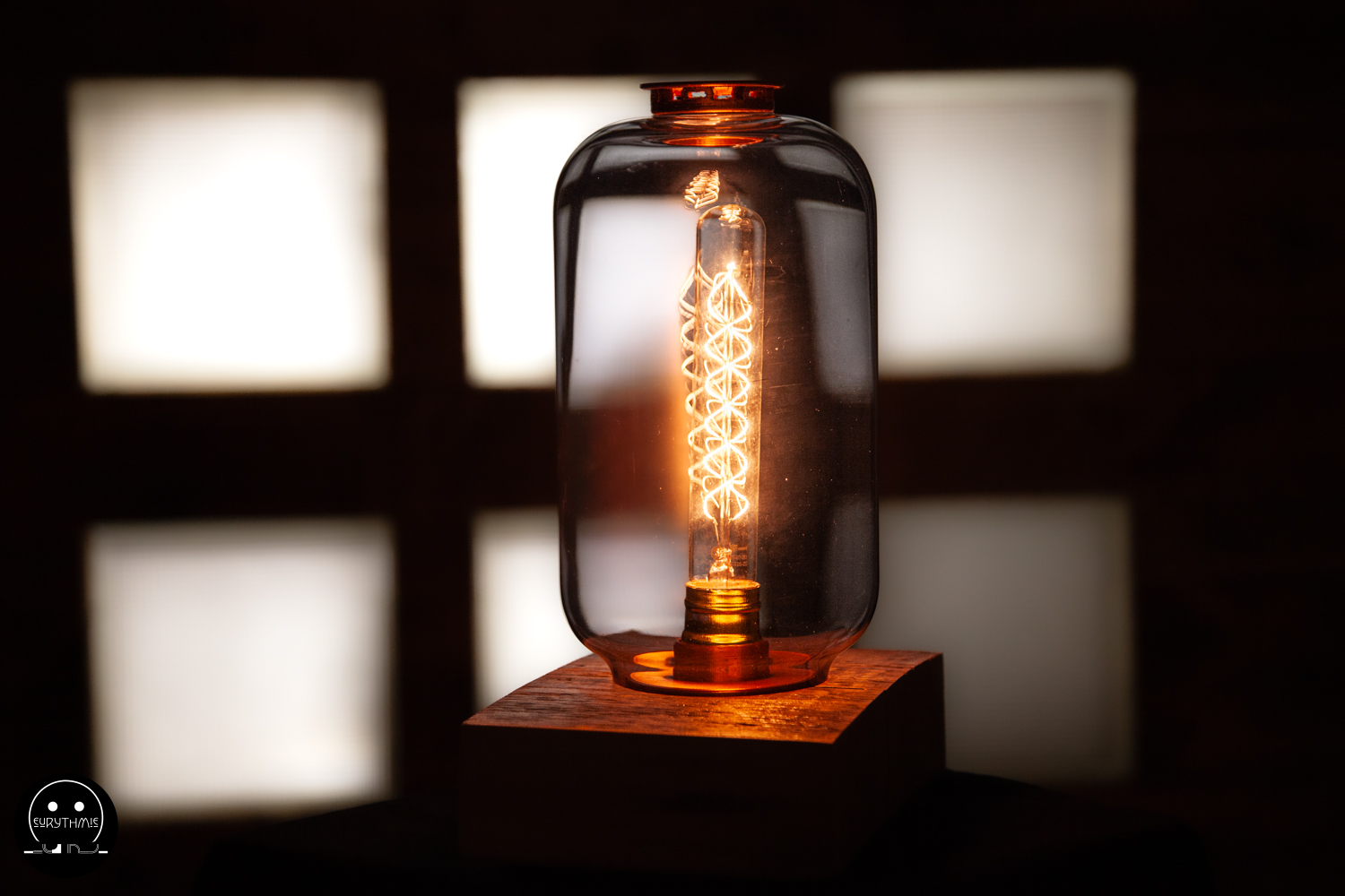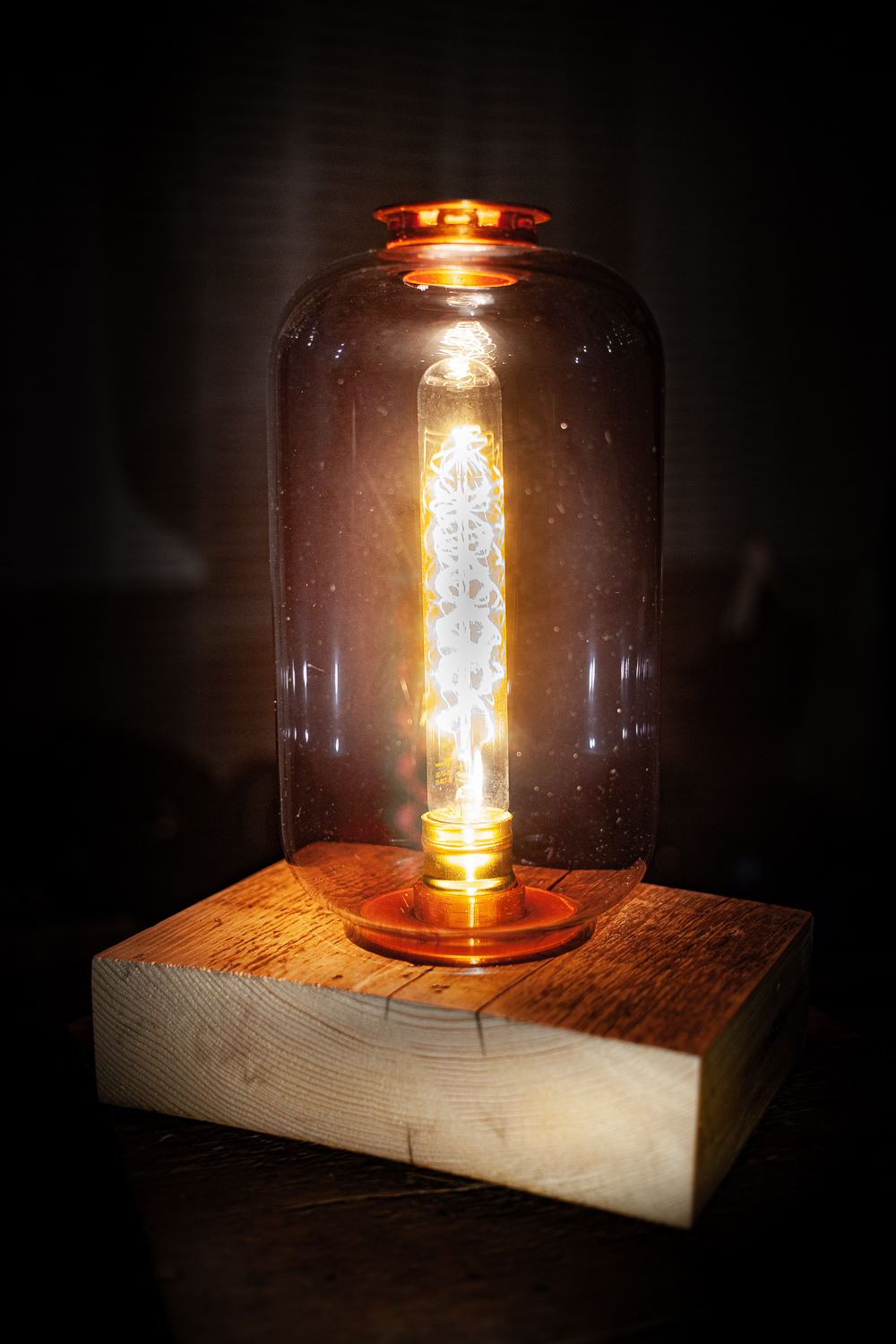 Ampoule à incandescence offrant une lumière chaude et une teinte chaude, visible à travers un verre légèrement fumé.