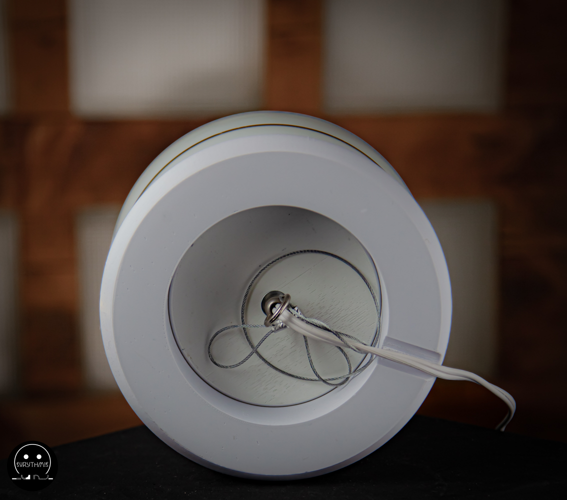 Ce modèle propose deux utilisations différentes possibles. Posée sur son socle ou bien accrocher , le socle est amovible, laissant le choix de le conserver ou de l’enlever dans une utilisation suspendue.